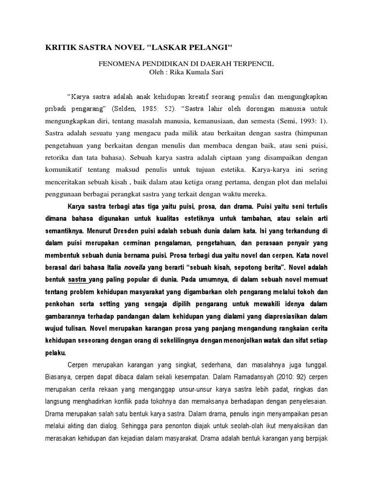 Doc Kritik Sastra Laskar Pelangi Indri Cha Academia Edu