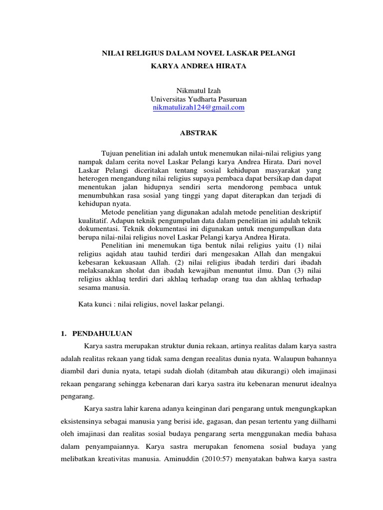 Nilai Religius Dalam Novel Laskar Pelangi Pdf